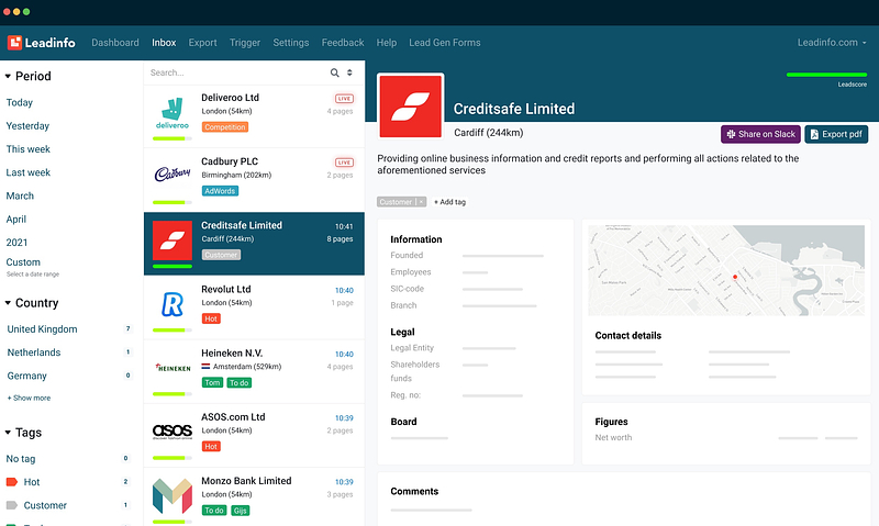 Leadinfo is a lead generation software that recognizes companies arriving on your website so that sales teams can engage directly.