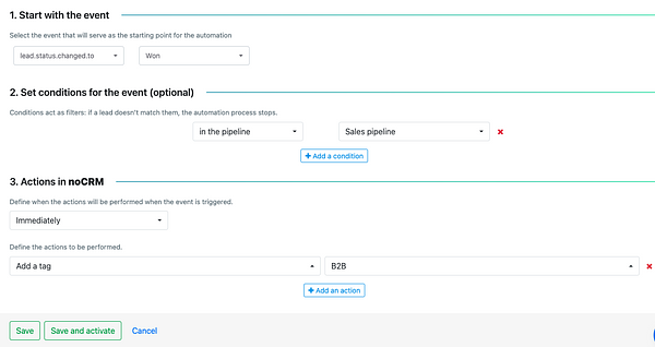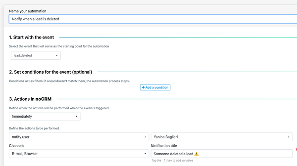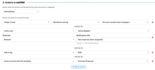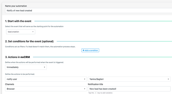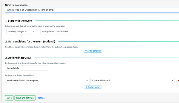 Once saved and activated, noCRM will handle the rest every time the event occurs.