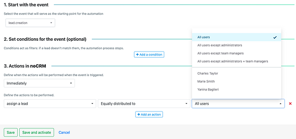 👤 Automatically assign a lead to a user or distribute randomly