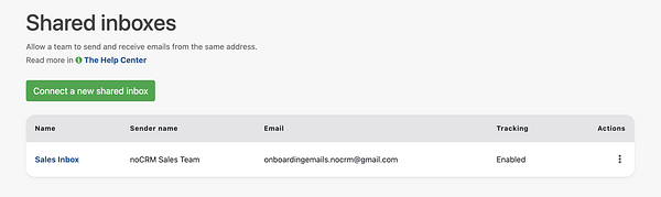 É possível conectar várias caixas de entrada compartilhadas e gerenciá-las separadamente dentro da noCRM.